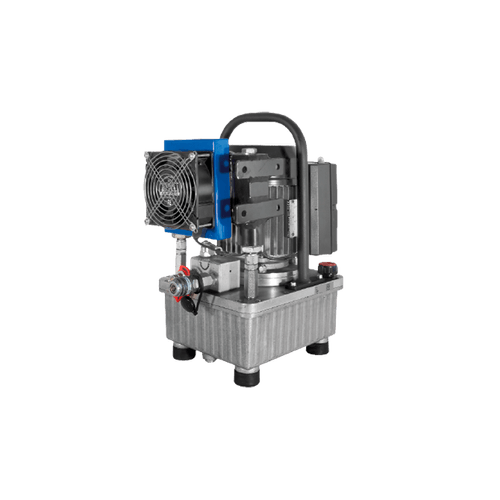 Our Electric Motor Hydraulic Power Units, encompassing models CB700 L4, CB700 L4 with 2 Solenoid valves, CB700 L7, VDS700 380 bar, VDS700 G28 with Cooler, and VDS700 L3 700 bar, provide precise and high-performance power from 1.4 kW to 9.2 kW. These units offer oil flow rates from 1.2 l/min to 7.5 l/min and are designed for optimal performance with features like integrated solenoid valves, automatic filter cleaning, and adjustable volume flow control. The robust chassis with large wheels ensures easy transport and stability. Suitable for small-medium hydraulic tools, these units excel in construction, cutting, and other applications requiring precise control and reliability. Available in various voltage versions, they are versatile and adaptable to a wide range of tasks.